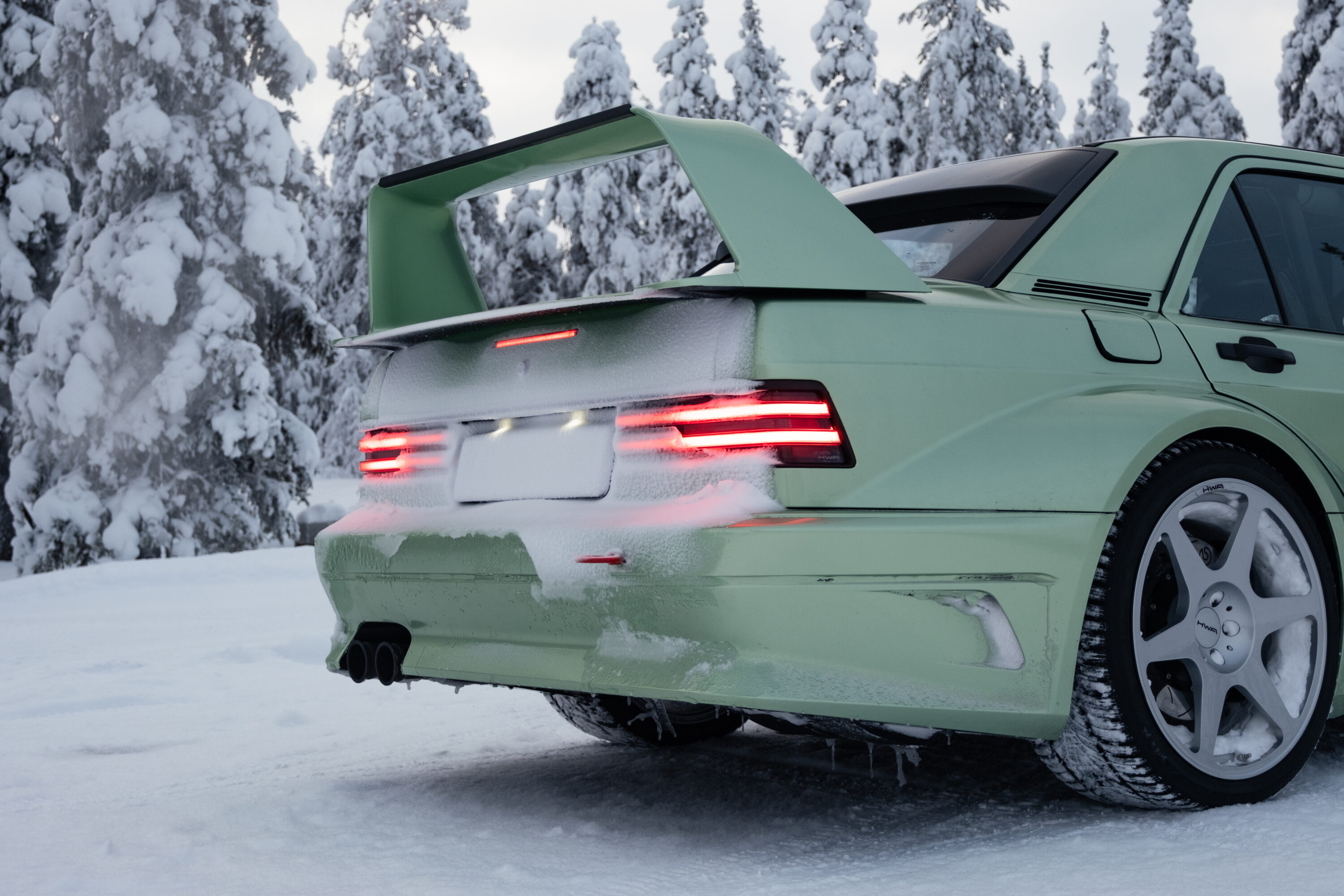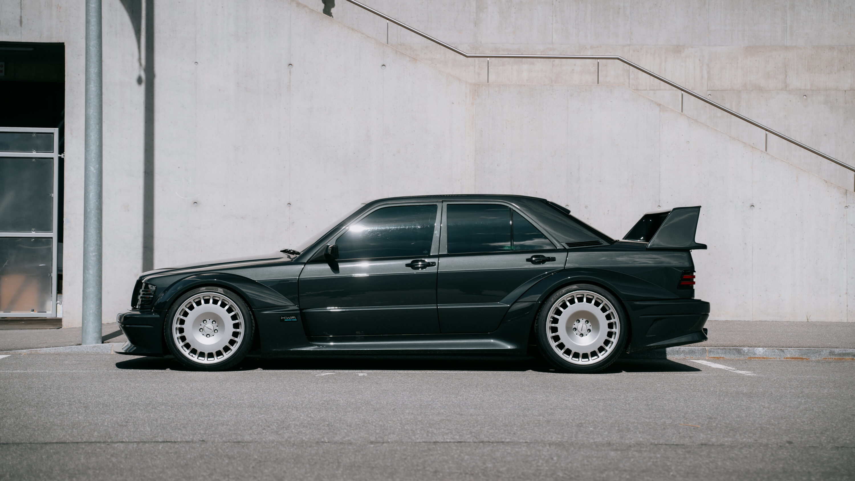 Der HWA EVO nimmt die Silhouette des 190 E 2.5-16 Evo II, also eines jener Autos, das schon im Stand nach DTM roch, und denkt sie mit der Härte eines Ingenieurbüros neu. Er wird gern auf seine Optik reduziert, doch spannend wird es erst darunter: