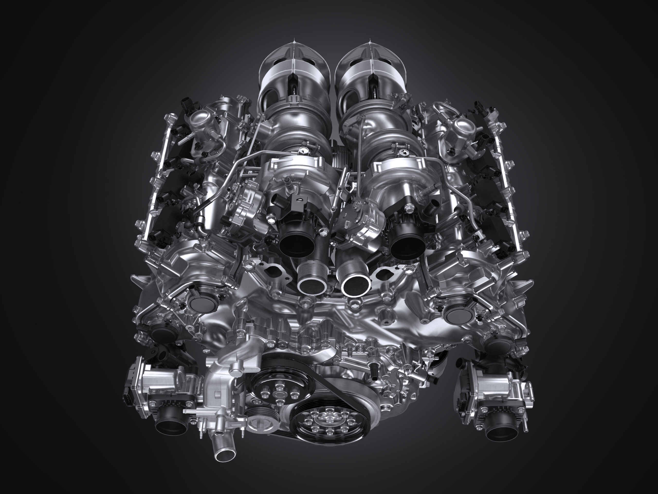 Der neue 4,0-Liter-V8-Biturbo ist der erste Motor dieser Grösse, den Toyota seit Jahren komplett neu konstruiert. Er ist kompakter, niedriger und thermisch stabiler ausgelegt als alle bisherigen Toyota-V8 und sitzt so tief wie möglich im Vollaluminiumrahmen. Die Trockensumpfschmierung reduziert die Bauhöhe weiter und erlaubt stabile Ölversorgung auch bei hohen Querbeschleunigungen. Das heisse V verkürzt die Wege zu den Turboladern und verbessert das Ansprechverhalten, während die relativ kurze Hubzahl von 83,1 Millimetern klar zeigt, dass Toyota einen drehfreudigen Biturbo will und keinen reinen Drehmomentschwerpunkt.