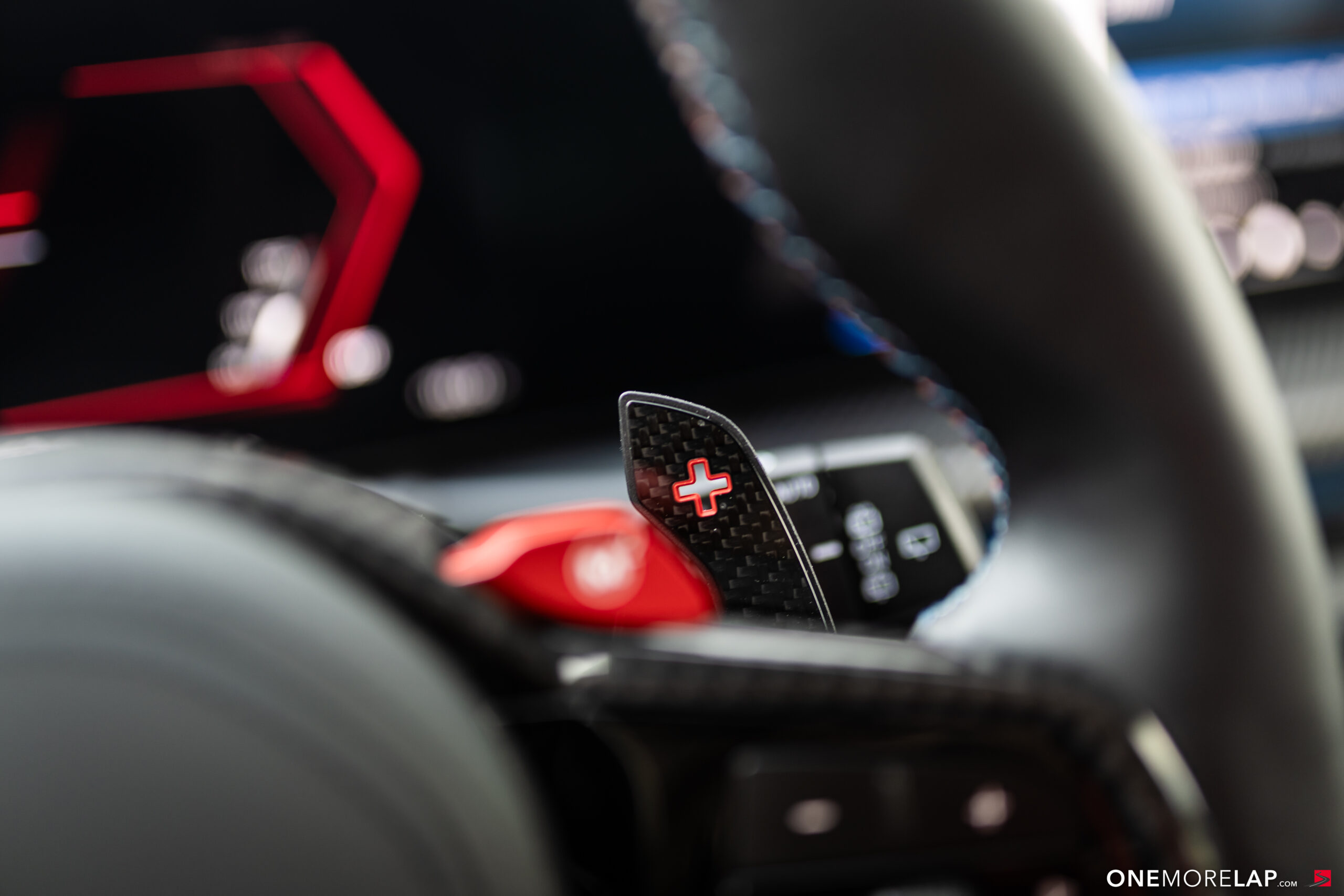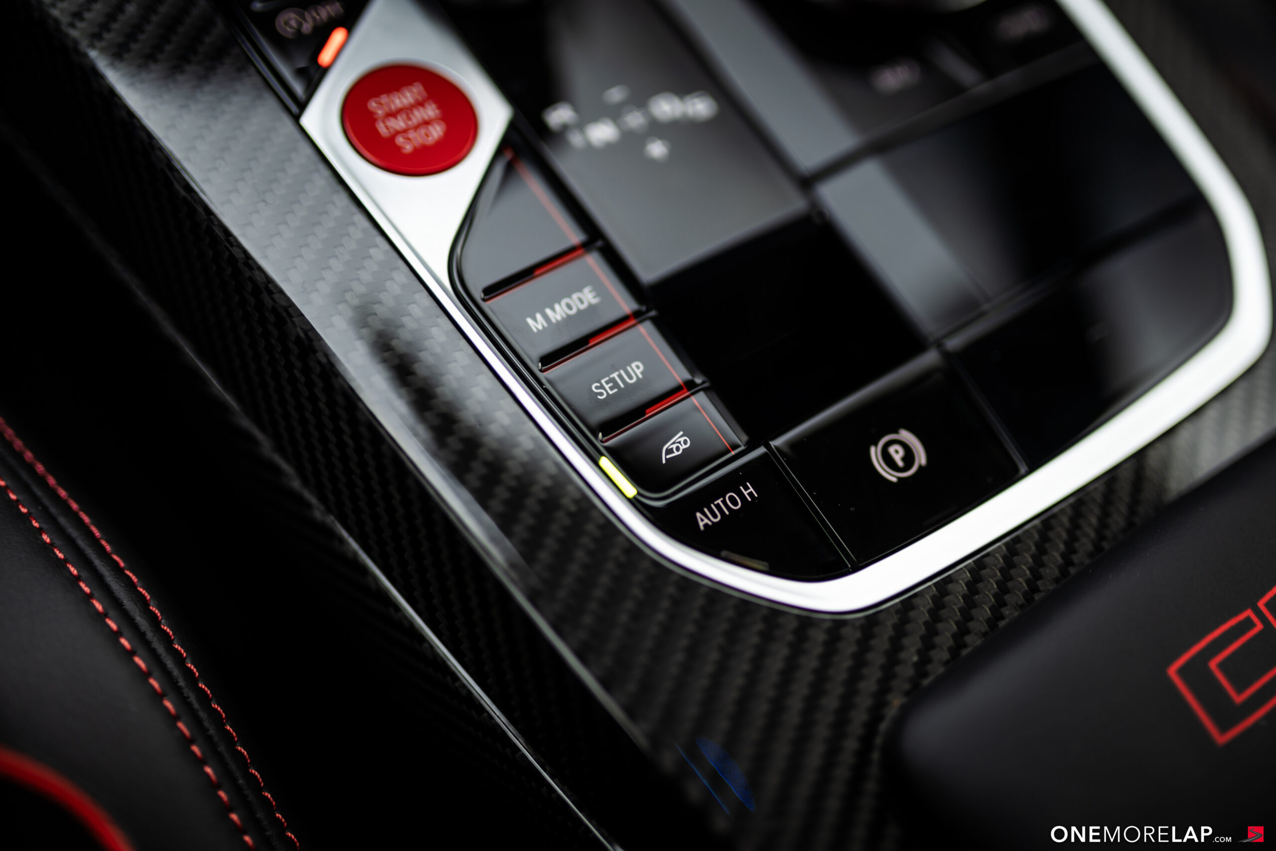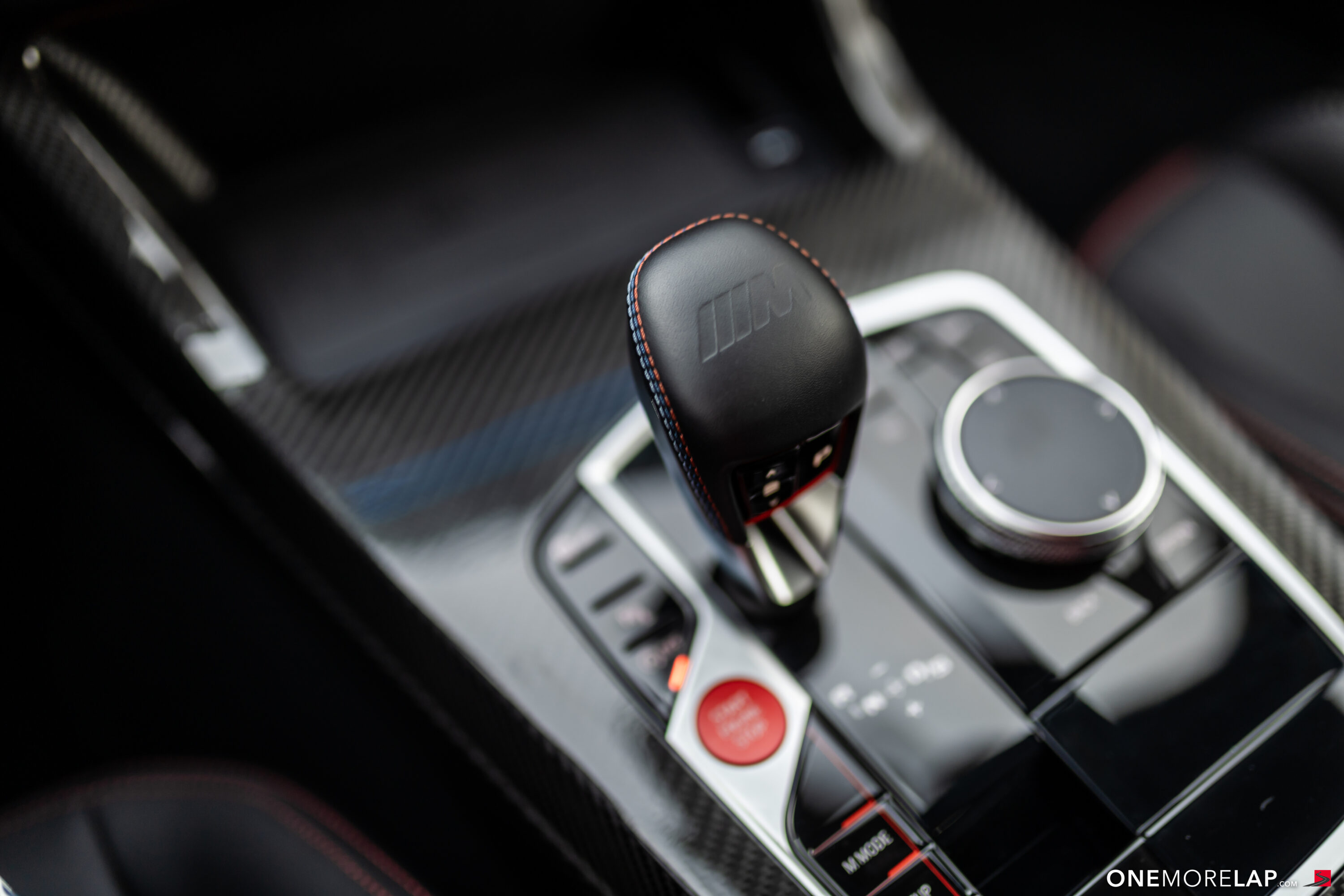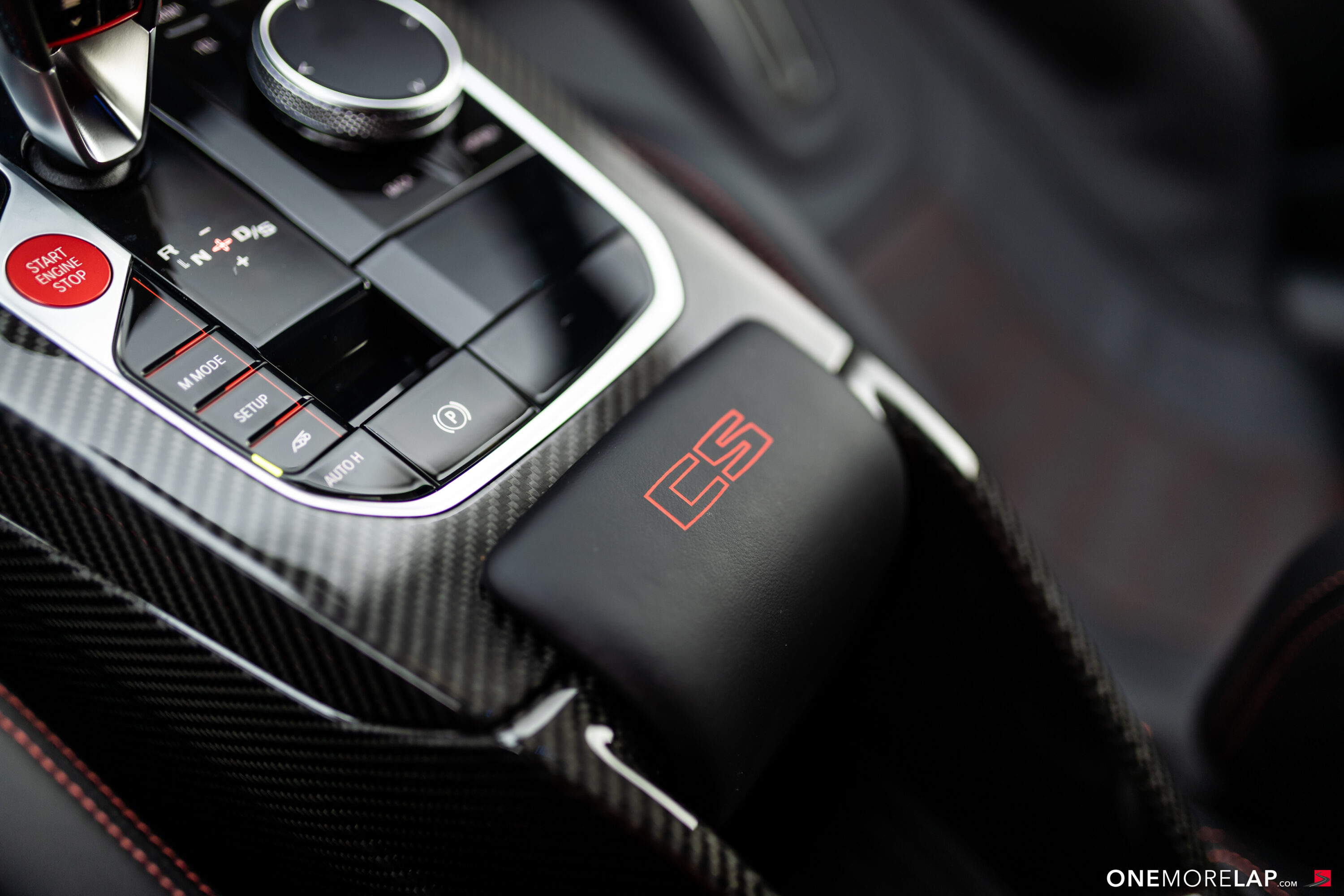 Die Sitzposition ist tief, sportlich, exakt. Das serienmässige M Alcantara-Lenkrad wurde bei uns durch ein optionales Leder-Lenkrad ersetzt. Ein abgeflachter Kranz und die rote 12-Uhr-Markierung blieben jedoch erhalten. Kleine Details wie die M Sicherheitsgurte, die M-Naht am Automatik-Wählhebel, die Einstiegsleisten mit Modellschriftzug oder der rote CS-Schriftzug auf der Mittelkonsole wirken nicht verspielt, sondern bewusst gesetzt. Verarbeitung und Materialwahl? Absolut perfekt.
