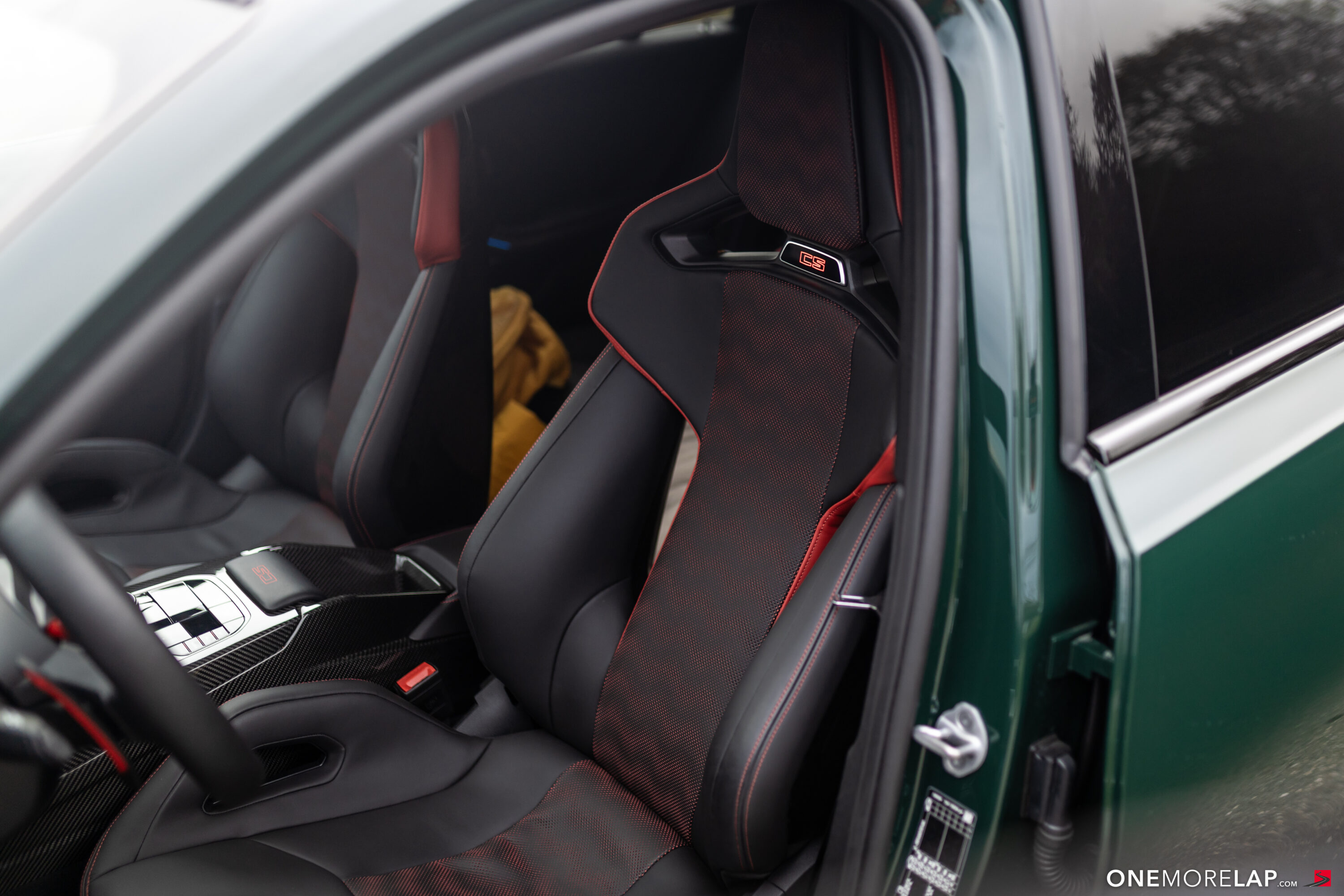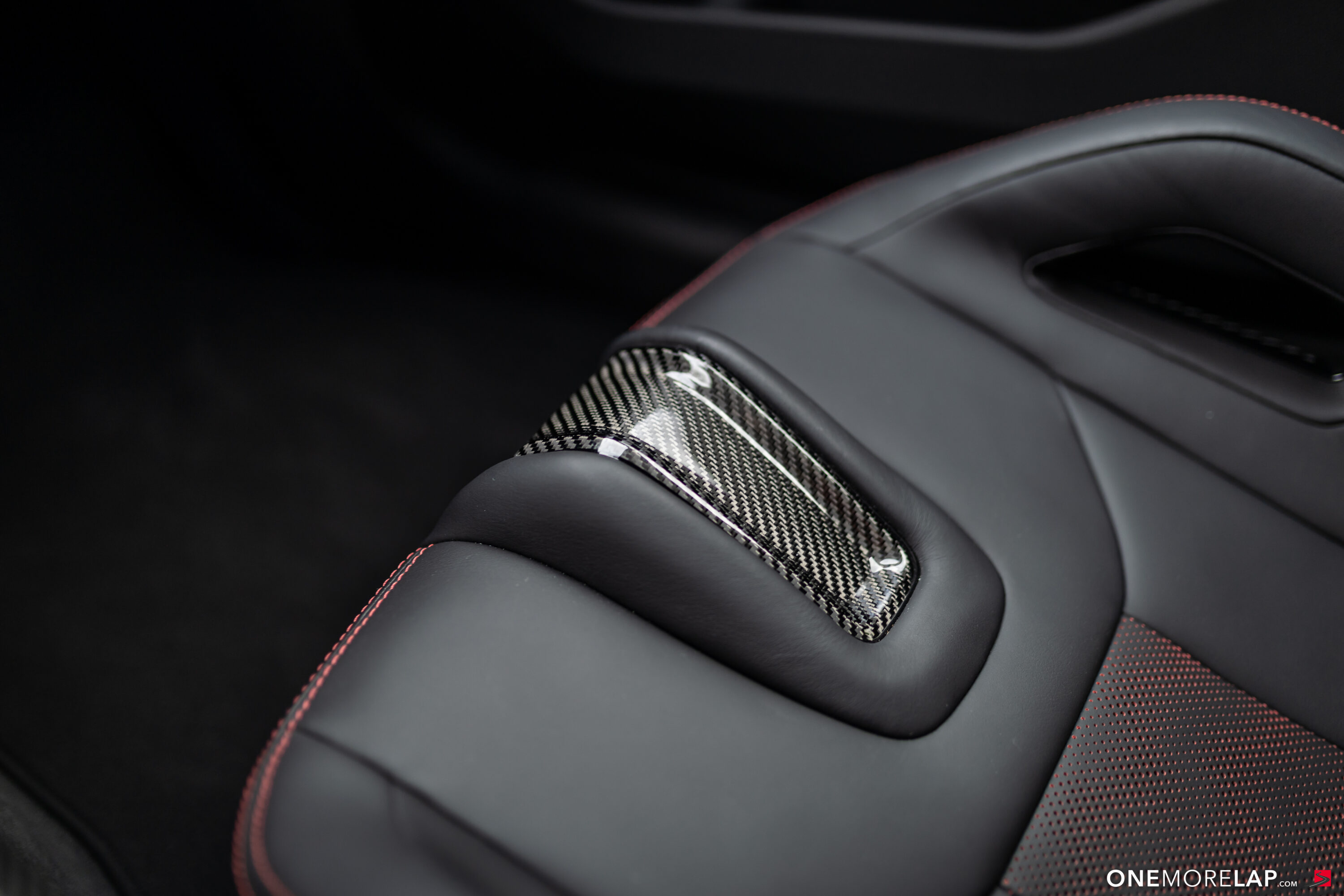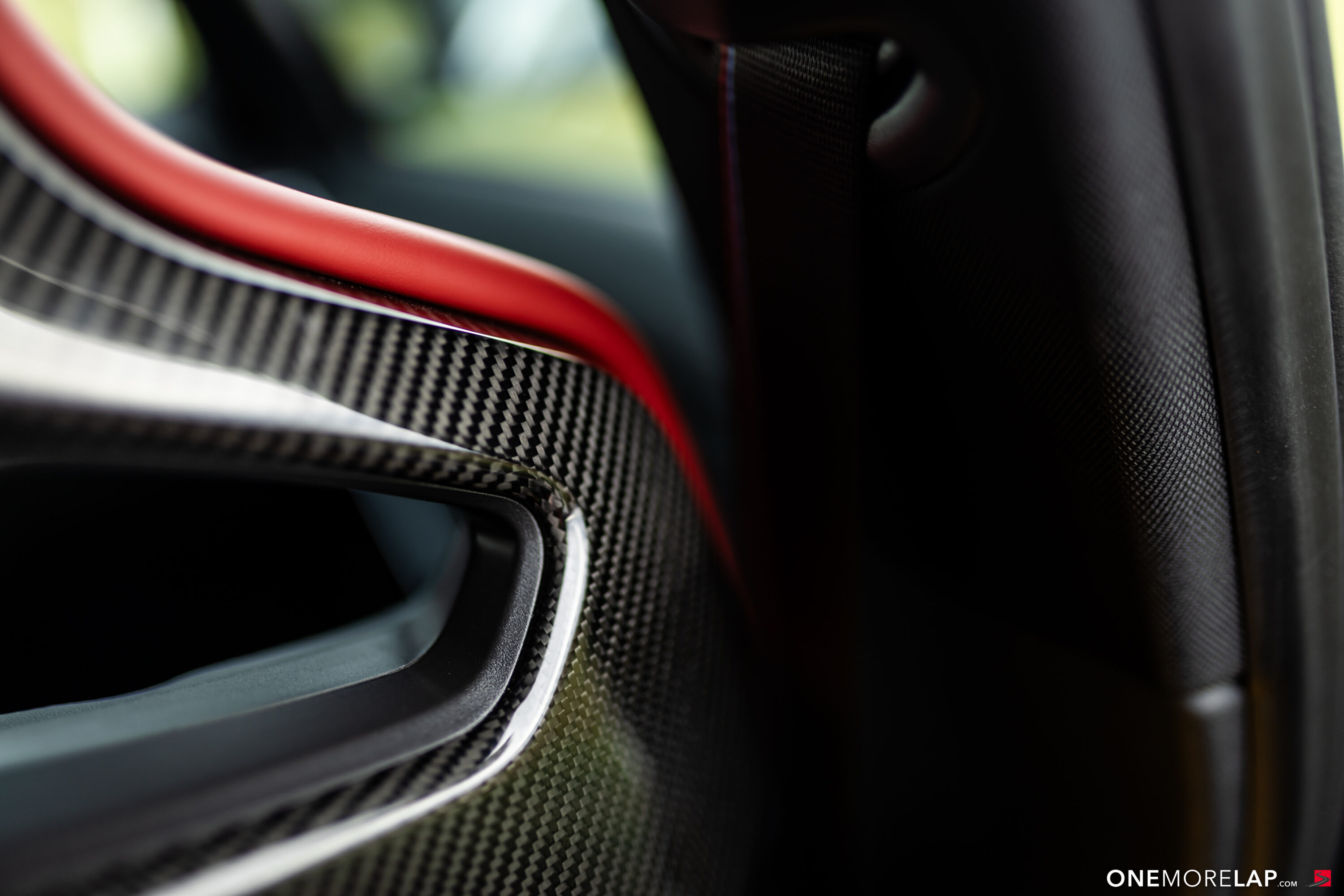 Enge Wangen, straffe Polster, eine Carbon-Aussparung zwischen den Beinen. Sehr schnell wird klar: Du sitzt perfekt – aber nur genau in einer möglichen Position. Diese ist hervorragend, aber Beine anwinkeln, leicht schräg sitzen, etwas zur Seite lehnen – all das ist nicht vorgesehen. Das hier ist ein Schraubstock. Aber genau das ist auch das Gefühl, das bleibt. Nicht nur heute, sondern Wochen und Monate später, wenn man an M-Fahrzeuge mit diesen Sitzen zurückdenkt. Wunderbar.