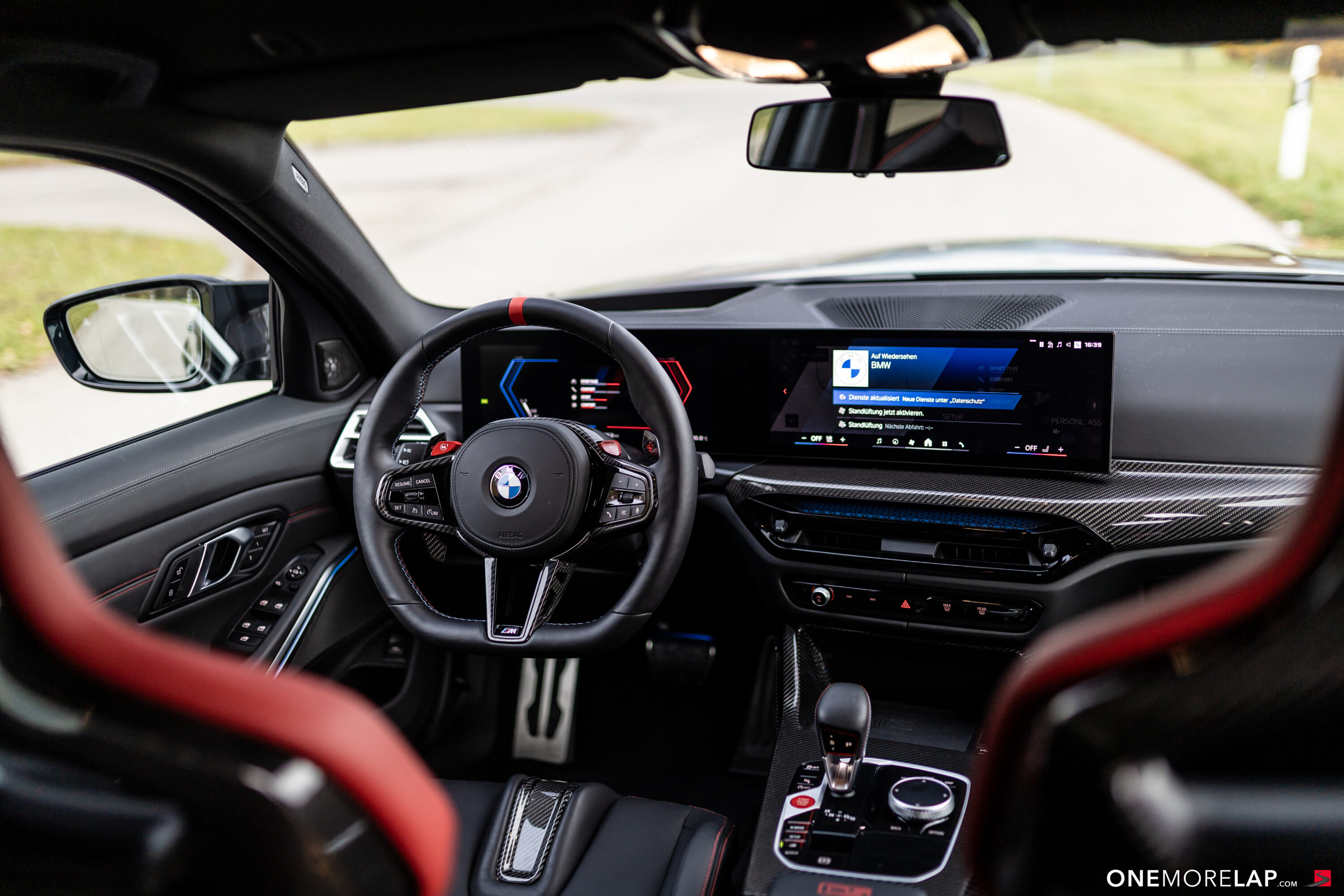 Zentraler Ankerpunkt sind die serienmässigen M Carbon-Schalensitze. Elektrisch einstellbar, beheizbar, mit integrierten Kopfstützen, beleuchtetem CS-Schriftzug und Merino-Lederoberflächen in Schwarz/Rot. Sie sehen fantastisch aus, fühlen sich genauso an und bieten auf der Landstrasse wie auf der Rennstrecke perfekten Halt. Aber sie sind kompromisslos. Nach längeren Strecken spürst du sie. Immer. Nicht schmerzhaft, aber präsent. Das ist kein Sitz, der dich vergessen lässt, dass du in einem M unterwegs bist. Zu einem M3 CS Touring passt das für mich hervorragend. Ob man genau das in einem „Daily-Driver M3 Touring“ haben will, ist allerdings diskutierbar.