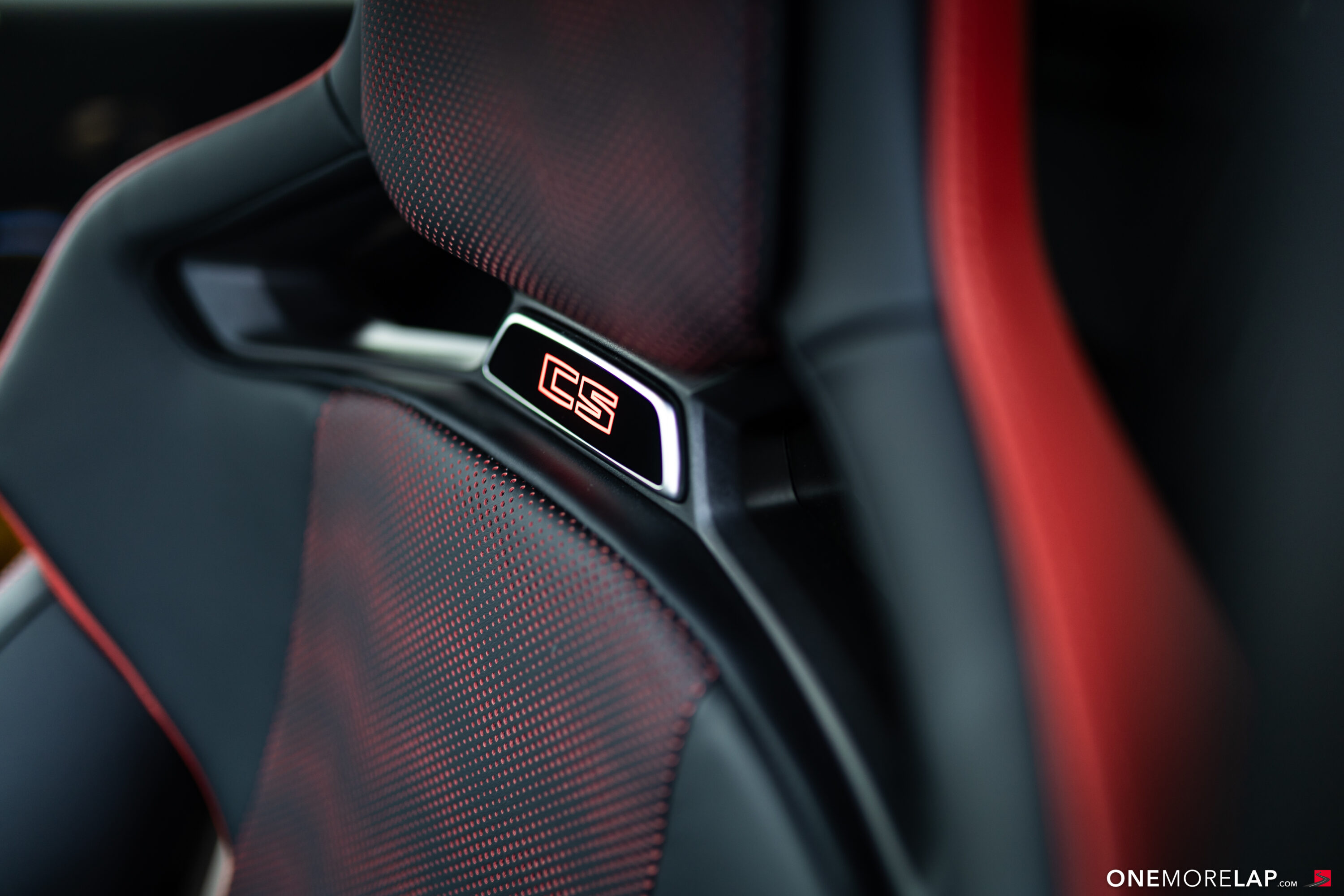 Ersteindruck. Wow! Die Front wirkt tief, fast schon unverschämt tief. Die Carbonlippe sitzt so nah am Asphalt, dass man unwillkürlich über den Einfahrtswinkel der heimischen Garage nachdenkt. Darüber die nur teil-lackierte Carbonhaube mit sichtbarer Struktur. Leider fehlen die gelben Tagfahrlichter, ein unterdessen typisches CS-Merkmal und tolle Motorsport-Reminisenz.